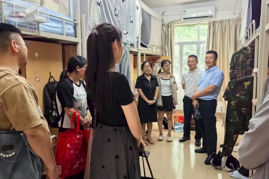 学院全体领导与辅导员一同走进新生宿舍,走访每一个房间,查看住宿环境,亲切与新生唠家常,询问新生们初入校园是否习惯、对学院有无疑问。老师们亲切叮嘱新生要尽快适应大学生活,遇到困难随时找老师。同学们初来的陌生感,在一次次叩门、一声声关怀里,化作对学校学院的归属感。