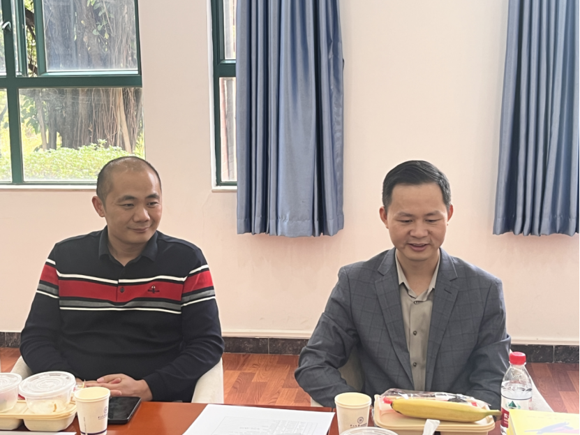 图2 钟金来校友与朱育军校友为同学们进行分享