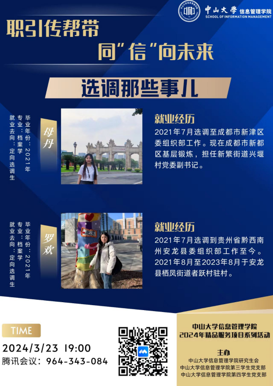 深入开展“我为同学做实事”活动。学生会聚焦同学们学业发展需求,积极组织“考研复试交流会”、“期末复习交流会”等活动,努力营造“学在中大,追求卓越”的良好学风;聚焦同学们求职期盼,策划开展大学生职业规划大赛、西部计划宣讲会、基层就业分享会等就业主题活动,助力同学规划职业生涯。研究生会立足于信息资源管理学科性质及业界动态,秉持“全方位开展合作、全方位对接需求、全方位组织保障”的活动理念,顺利举办“携梦起航职等你来”就业实践系列活动,被评选为精品服务项目。