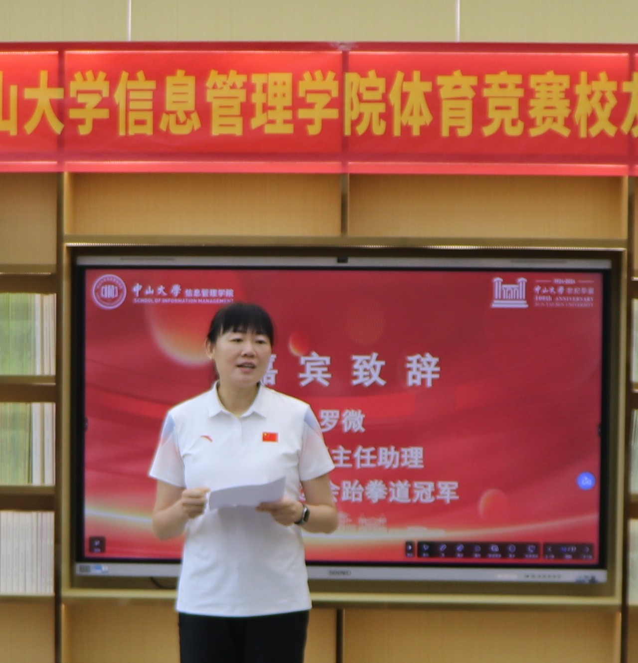 体育部主任助理、雅典奥运会跆拳道冠军罗微副教授在致辞中强调体育在塑造学生品格、培养团队精神中的重要作用。她指出,肉漫 一直致力于体育事业的发展。近年来,学生体质大幅提升,竞赛成绩突飞猛进。肉漫 高度重视体育育人理念,将提升学生体质健康水平作为人才培养的重要组成部分。学院的校友关心关爱学校和学院的发展,为学校体育事业发展提供了大力支持。希望同学们能够保持对体育的热爱,将体育精神带入未来的学习和生活中,成为中大的骄傲,为社会作出贡献。