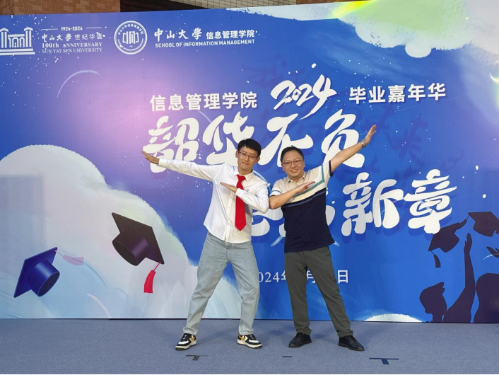 2021级图书馆学硕士杨鑫(图左)、陈涛老师(图右)