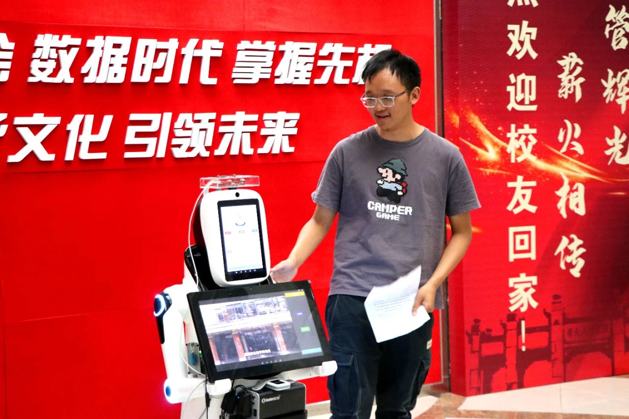 博士生代表邓博文表示,在安装调试“小信”的过程中,他们紧密结合了专业知识、其他学科知识与前沿科技理论、信息技术,致力于最大限度地开发机器人的功能模块。对“小信”的优化升级,不仅是理论知识的运用,更是实践能力的提升。他们不怕困难,热爱学习,攻克一个个难题,也提升了自己的创新能力。“我们希望越来越多的信管人能够加入到机器人的研发进程中,也希望‘小信’的功能模块更加完善,从而能更多地为学院造福。”
