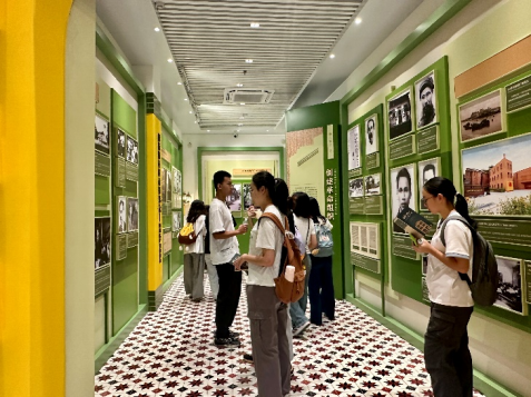 随后,支部一行来到越秀区文明路的越南青年政治训练班旧址。此处是大革命时期胡志明领导的越南青年革命同志会机关与前两期训练班办学之所。周恩来、刘少奇、陈延年等早期重要领导人曾应邀授课。同学们在此深入了解老一辈革命家的光辉事迹,感受到两国人民并肩战斗的革命情谊。