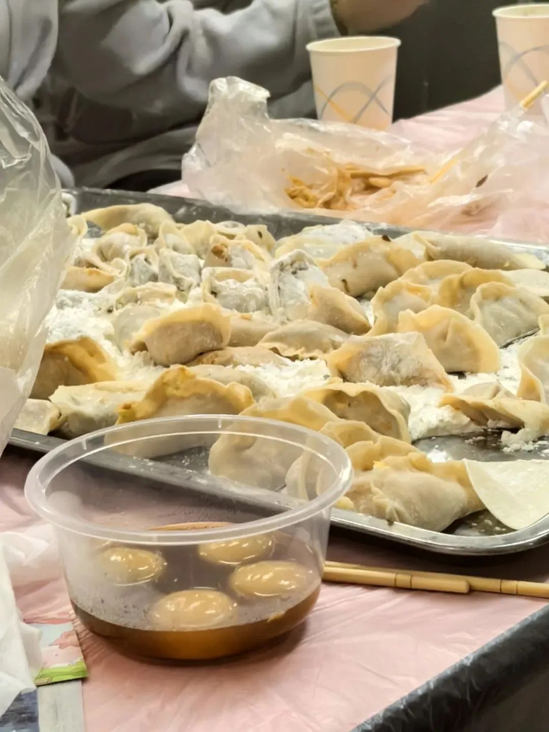 在愉快的节日氛围中,包饺子的活动充满了欢乐的气息。经过师生的辛勤劳作,一盘盘形态多样的饺子被送入厨房。