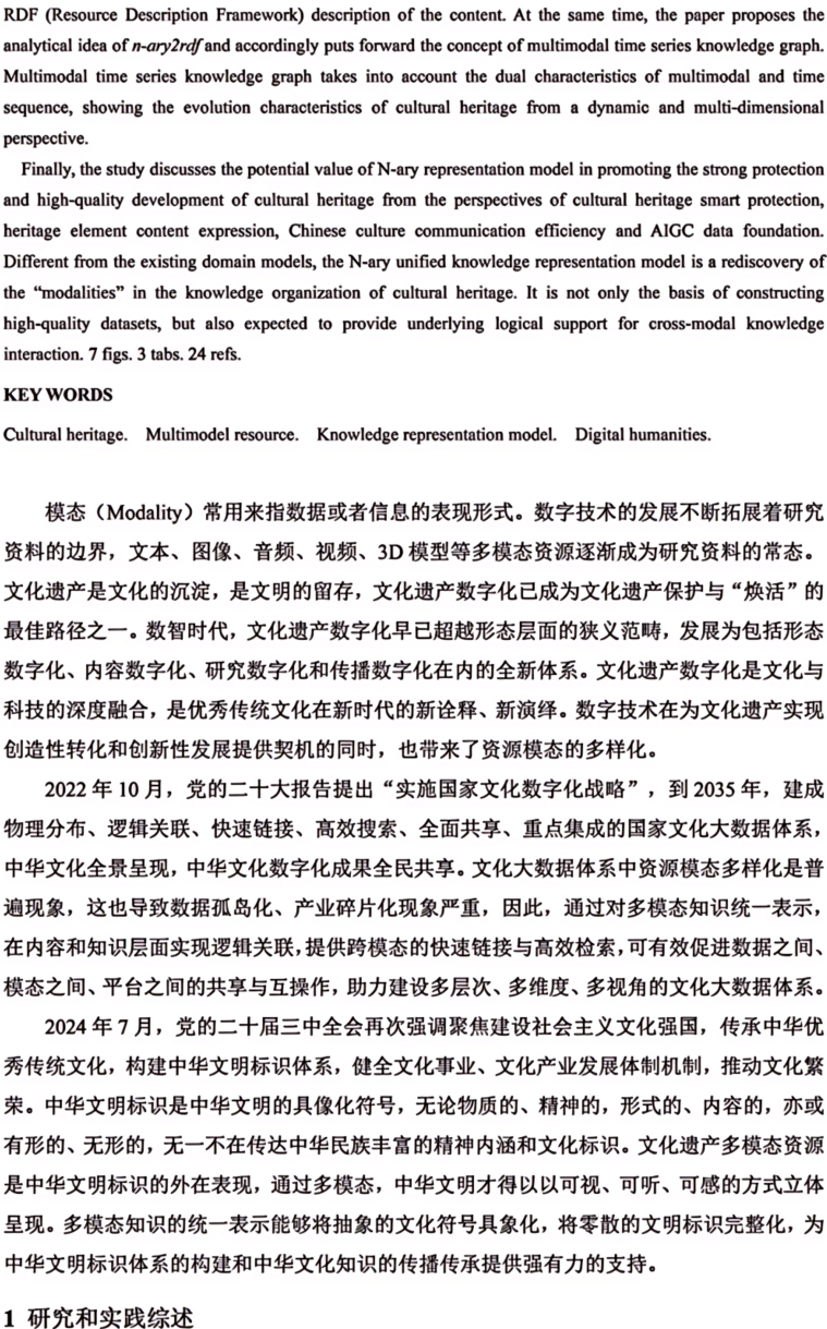 关键词 文化遗产 多模态资源 知识表征模型 数字人文